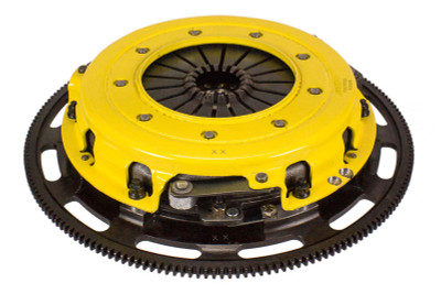 T3S-F08 street, twin disc kit offers twice the number of disc surfaces for better wear, heat capacity and long life compared to single disc kits. These kits use a proprietary Positive Lift Floater System design, which results in quiet operation with no floater rattle and no posts to wear. ACT twin disc kits endure an exclusive four-stage, heat-treating process on all diaphragms. The ACT twin disc features the ability to adjust for disc wear and provides equal disengagement for discs. The ACT Performance street rigid-hub discs feature premium organic materials with high copper content for better heat transfer and steel-backed lining for greater burst strength and durability. The chrome-moly hub is heat-treated for strength and durability. Rivet design and materials are carefully selected for maximum strength. All ACT twin disc kits include a CNC-machined and dynamically balanced flywheel to ensure trouble-free installation and operation. ACT twin disc kits include a pressure plate, two discs, a floater, flywheel and alignment tool. Some kits may included a pilot bearing and release bearing.