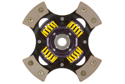 3000303 is a performance street disc and the most popular disc purchased. It features premium organic materials with high copper content for better heat transfer. Performance street discs allow for quicker shifting and smooth engagement. These discs feature a reduced marcel for faster shift action to complement ACT pressure plates. ACT spring-centered assemblies use bushings and cone springs similar to factory clutch discs. This creates frictional dampening, which improves clutch life and reduces noise. Quiet operation with increased strength and reliability.