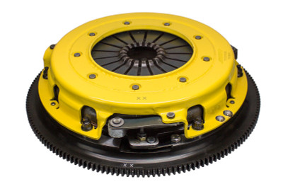 T3R-G01 race, twin disc kit offers twice the number of disc surfaces for better wear, heat capacity and long life compared to single disc kits. These kits use a proprietary Positive Lift Floater System design, which results in quiet operation with no floater rattle and no posts to wear. ACT twin disc kits undergo an exclusive four-stage, heat-treating process on all diaphragms. The ACT twin disc features the ability to adjust for disc wear and provides equal disengagement for discs. ACT's 6-pad rigid race discs are made with high quality, ceramic friction materials. The chrome-moly hub is heat-treated for strength and durability. The lightweight, rigid design allows for quicker shifts and trouble-free service. All ACT twin disc kits include a CNC-machined and dynamically balanced flywheel to ensure trouble-free installation and operation. ACT twin disc kits include a pressure plate, two discs, a floater, flywheel and alignment tool. Some kits may include a pilot bearing and release bearing.