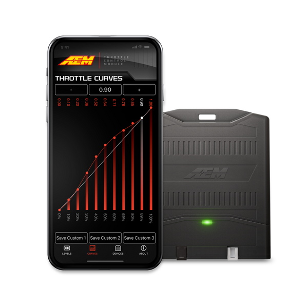 The AEM TCM (Throttle Control Module) instantly puts YOU in CONTROL. Get rid of laggy acceleration and dead pedal with an AEM TCM. Wirelessly program your own throttle curves with your Phone when using the AEM TCM APP. You can use one of 5 preset throttle curves or customize and save up to 3 of your own. Be in CONTROL and dial in your throttle curve just the way you want. Installation is plug & play through your accelerator pedal harness. Phone APP support will be for both Andriod and iOS. Our APP is user-friendly with intuitive functions to help you take CONTROL. More vehicle application support to come.