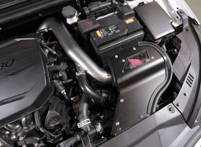 The AEM 21-715P Performance Cold Air Intake System produces horsepower and torque gains by replacing your vehicle's restrictive factory air filter and air intake housing. This air intake system was designed, tuned and dyno-tested to fit specific Hyundai Veloster models. Air enters the system through an oversized AEM Dryflow synthetic washable air filter for outstanding air flow, filtration and performance. The air filter is relocated to the driver-side wheel well which is designed to reduce intake air temperature and increase horsepower. The intake tubing is constructed from mandrel-bent aluminum featuring a durable chrome-like finish. This air intake system was developed to accommodate the engine's factory emissions control devices including a replacement silicone breather hose. The tapered cylinder shaped AEM Dryflow air filter is made from an oil-free, synthetic filter media that can be used for up to 100,000 miles before cleaning is needed (depending on driving conditions). The air intake system is backed by AEM's Lifetime Limited Warranty. Some AEM air intakes are not legal for sale or use in California and other states adopting California emission standards, while others are 50 state legal. View the 21-715P vehicle applications to determine the legal status for each vehicle.