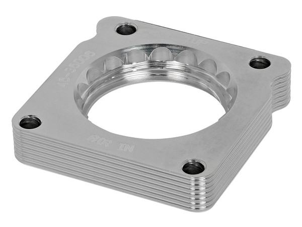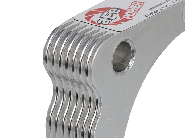Serrated/Helix Design: The Serrated/Helix design creates air turbulence in the intake manifold. This turbulence increases the air pressure in the combustion chamber resulting in increased horsepower, torque and improved throttle response. The Serrated/Helix combination design also reduces intake whistle that occurs with other helix only designs. 6061-T6 Billet Aluminum Construction: All Silver Bullet Throttle Body Spacers are precision machined from 6061-T6 billet aluminum for lightweight, high strength and perfect fit and finish. Installation Is A Snap: This Silver Bullet throttle body spacer uses all factory mounting locations and a gasket providing stability and a hassle-free installation. Emissions Disclaimer: This product does not require a CARB EO# (Vehicle does not exist in U.S.). Note: Will work with aFe's Momentum GT intakes (P/N: 51/54/75-76107).