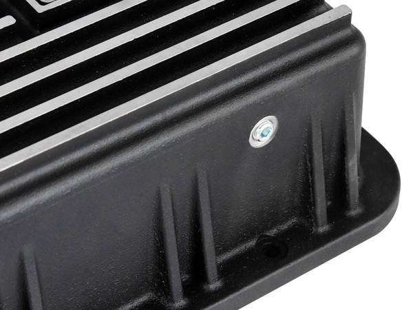 aFe POWER Pro Series deep transmission pan brings performance engineering to the protection of your trucks transmission. This transmission pan has additional capacity for 2 more quarts over stock at the factory line, a magnetic drain plug and a 1/8" NPT port for your temperature sensor. Built-in internal and external fins transfer heat from the fluid to the outside air for maximum cooling. This transmission pan is constructed out of durable die-cast A356 aluminum with reinforced ribs and a wrinkle black powder-coating for maximum strength and styling.