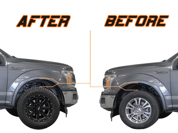 aFe CONTROL Leveling Kits are made from 6061 billet aluminum and provide a 2.0-Inch lift in the front to provide better off-road performance while also eliminating the “nose-down rake” notorious on stock trucks. High quality hardware is used for strength and durability. Installation of these 2.0-inch leveling spacers can be done at home with the proper tools and safety precautions. Installing these spacers does not require disassembly of the strut/spring.