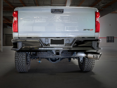 This DPF-back exhaust system is constructed of 4" mandrel-bent 409 stainless steel tubing for maximum strength and durability. Finishing off this exhaust system are dual 5" diameter black 304 stainless steel intercooled clamp-on exhaust tips. The tips features an aFe POWER logo plate riveted on for a unique style. Some cutting may be required, see instruction sheet for further information. Utilizing factory style hangers this system mounts directly to factory mounting locations for a hassle-free installation. A mitered merge collector is used to decrease turbulence and increase exhaust velocity resulting in increased horsepower, torque and improved throttle response. Utilizing state-of-the-art computer-aided design technology, this exhaust system is designed for custom, high tolerance factory fitment. 100% MIG-Welded for race-proven strength and durability. This system fits: Double Cab / Short-Bed - 149.4" Wheelbase, Crew Cab / Short-Bed - 158.9" Wheelbase, Double Cab / Long-Bed - 162.4" Wheelbase, Crew Cab / Long-Bed - 172" Wheelbase