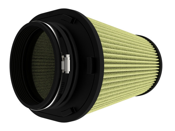 This filter features seven layers of composite media for maximum protection. The patented combination of oiled cotton gauze with synthetic material allows this media to thrive in the dustiest and dirtiest environments imaginable. Pro-GUARD 7 filters are easily recharged with aFe's POWER CLEANER and gold air filter oil. aFe POWER performance air filters use a rounded, evenly spaced pleat design which allows for more usable filter surface area, providing increased flow and greater dust holding capacity. This aFe POWER performance air filter is constructed with a polyurethane base and top. Unlike other materials that degrade after repeated heat cycles in an engine bay, polyurethane maintains its original molded shape. Utilizing the filter's retention groove, the filter locks into most Stage-2 housings with zero hardware. This simple design allows for easy filter maintenance and replacement. Fits: aFe POWER intakes 57-10011D, 57-10011R, 57-10010D, 57-10010R.