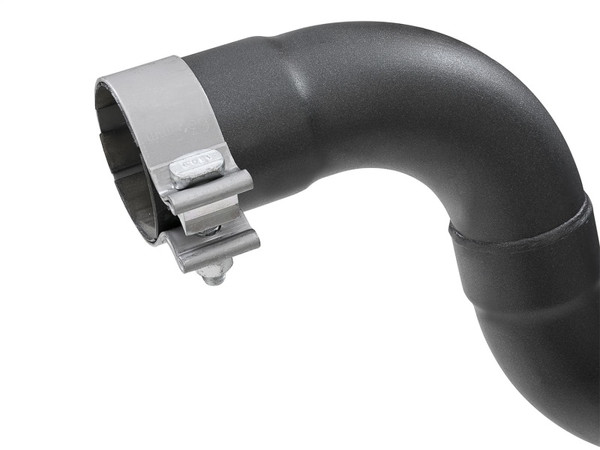 aFe Rebel Series axle-back exhaust system complements your Jeep JL on and off-road. Mandrel bent 409 stainless steel tubing and free-flow muffler delivers increased exhaust flow, performance and tuned sound. MIG welded for durability the system uses factory mounting locations for an OE-style fit and stays put under any driving condition. Dual 4-1/2" black powder coated stainless steel tips with aFe POWER logos makes this system look as good as it performs. A free-flowing, stainless steel, muffler is used to absorb high pitch tones producing a powerful sound and unleashing more horsepower and torque potential. OE-style bayonet hangers are used to maintain a stable pipe location during any driving conditions. The bayonet tip holds the hanger bushing in place for an OE style, long lasting fit.