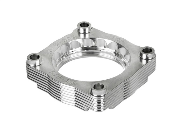 Silver Bullet throttle body spacers create turbulence in the air flow at the point just prior entry into the engine increasing horsepower, torque and improving throttle response and fuel efficiency. Silver Bullet throttle body spacers are constructed out of durable T-6061 billet aluminum and using a unique serrated/helix entry to create turbulence at the manifold while eliminating the annoying whistle found in other helix only throttle spacers.