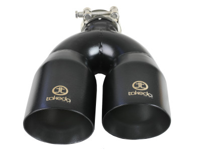 aFe Takeda 2.5in 304 Stainless Steel Clamp-on Exhaust Tip 2.5in Inlet 3in Dual Outlet - Black - 49T25364-B10