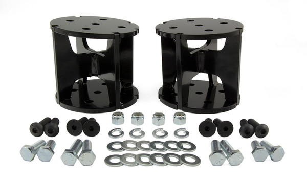 For drivers of lifted trucks, it's common to find that the towing and hauling capabilities of the stock suspension are compromised. With the new Universal Air Spring Spacers from Air Lift, drivers are now able to add a load support solution and restore the full potential of the vehicle. Available in 4" straight, 6" straight, 4" angled, and 6" angled varieties, the Universal Air Spring Spacers are designed to accommodate most lift kits, up to six inches. These high-quality, " steel spacers are rated to handle more than 10 tons of force, making them tough enough to handle even the heaviest loads. With a unique spinal design, the spacers are easy to attach to bellows-style air spring systems, including Air Lift's best-selling LoadLifter 5000 series and LoadLifter 7500 XL, using the provided hardware. With air springs equipped, drivers of lifted vehicles will find that the towing and hauling capabilities of their vehicles are restored. Adding air springs will eliminate many common issues faced when towing and hauling heavy loads, including squat, poor headlight aim, trailer sway, and bottoming out. Drivers and passengers alike will notice that handling, ride quality, and braking power are all greatly improved. Each Universal Air Spring Spacer kit comes with a clear, easy-to-follow, fully illustrated instruction manual to make the installation process easy clear and simple. As the leader in air suspension products for more than 65 years, Air Lift is committed to delivering quality load support parts that last. The key suspension components have all been torture-tested to ensure the highest quality, longevity, and customer satisfaction. With a limited-lifetime warranty, you can purchase this kit with peace of mind. Take your existing air suspension solution to the next level of safety and comfort with Universal Air Spring Spacers today!