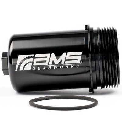 The AMS Performance R8/Huracan DL800 Transmission Billet Filter Housing has been developed as a reusable solution to the damage-prone OEM plastic housing found in the Audi R8 and Lamborghini Huracan. The plastic OEM unit can be easily damaged at the nut location when tightening or loosening during service. The 6061 billet aluminum housing used in the AMS kit rectifies this issue with its much-improved material hardness. Made from 6061 billet aluminum and finished with a protective anodizing process, this will be the last housing you ever need.