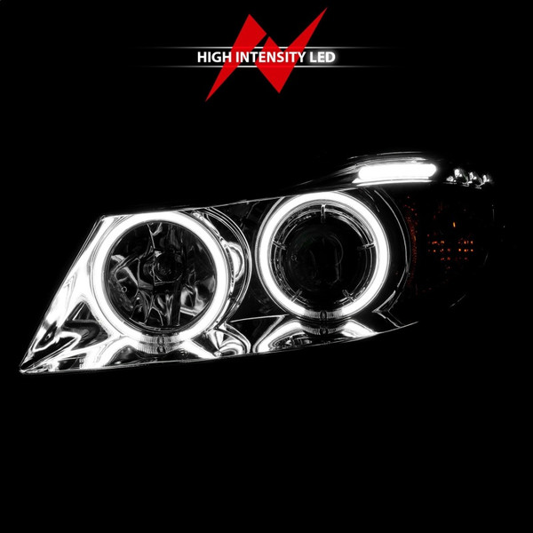 ANZO 2006-2008 BMW 3 Series E90-E91 Projector Headlights w/ Halo w/ LED Bar Chrome (CCFL) - 121336