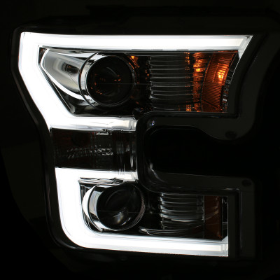 ANZO 2015-2017 Ford F-150 Projector Headlights w/ Plank Style Switchback Black w/ Amber - 111357
