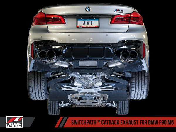 AWE Tuning 18-19 BMW M5 (F90) 4.4T AWD SwitchPath Cat-back Exhaust - Chrome Silver Tips - 3025-42062