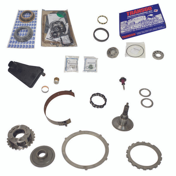 Same parts used in our own performance transmissions; All kits include the basic rebuild parts and gaskets; Bearing - Bronze; Clutch - O/D Roller (Steel); Coast Clutch Frictions/Steels; Direct Frictions/Steels; Forward Frictions/Steels; Intermediate Piston; Intermediate Frictions/Steels; Low Reverse Frictions/Steels; Overdirve Frictions/Steels; Reprogramming Kit; Snap Ring; Bearing; Boost Valve; Boost Valve & Sleeve Kit; Bushing - 1-Pc Case; Centre Support - BD Machined; Clutch - Overrun Roller; Gear Pump; Inner Race; Intermediate Band; Intermediate Band Servo Piston; Intermediate Sprag; Output Shaft; Pressure Plate - Low/Rev BD Machined; Rear Planet; Rear Ring Gear Hub - BD Machined; Steel - BD Machined; Filter; Overhaul Kit