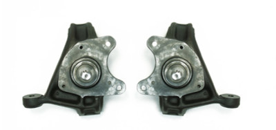 In 1983, Belltech developed one of the industry's first revolutionary products to help jump start the Sport Truck craze, the Drop Spindle. By relocating the spindle pin (Note: Application, while improving handling and retaining factory ride quality. Belltech spindles maintain critical suspension geometry and eliminate excessive ball joint, shock and tire wear common to other methods of lowering. Each spindle is crafted from powdercoated, CNC machined, high strength ductile iron castings providing the structural integrity to meet and exceed all factory specifications & requirements.