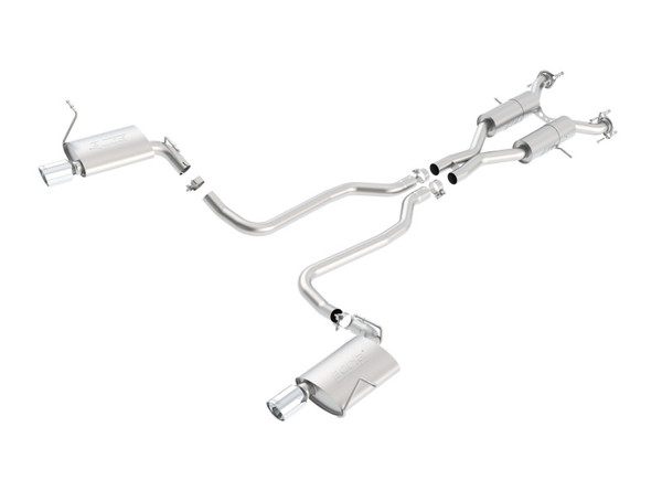 For models with tips that exit "Under the bumpber" (bumper does NOT have notches on the bottom). EXCEPT vehicles that have reusable factory tips. This system can be used with the factory skid plate. Features polished T-304 stainless steel tips. System features a merge X-Pipe for incresed performance and improved sound. BORLA® Cat-Back™ & Axle-Back exhaust systems feature patented straight-through and multi-core technology to unleash hidden horsepower. Increased exhaust velocity adds power, driving excitement, fuel economy, and the distinctive BORLA® Sound of Power respected by motoring enthusiasts everywhere.
