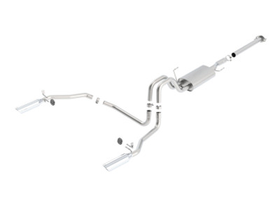 This system features a bright chrome on T-304 stainless steel tip. BORLA? Cat-Back? & Axle-Back exhaust systems feature patented straight-through and multi-core technology designed to unleash hidden horsepower. Increased exhaust velocity adds power, driving excitement, fuel economy, and the distinctive BORLA? Sound of Power respected by motoring enthusiasts everywhere. Each system is built from premium T-304 stainless steel, superior to T-400 series knockoffs (such as 409), to give you the absolute best in performance and durability. Ultra-smooth mandrel bends ensure maximum flow & power, and precision computer-controlled CNC manufacturing ensures an accurate fit. Best of all, BORLA? stands behind every system with a Million-Mile Warranty. Just what you?d expect from the world?s most experienced (and most winning) exhaust brand.
