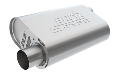 This muffler is directional. The outlet can be identified by the mounting bracket welded to the endcap. The world's first mufflers purpose-built to optimize the sound & power of crate and custom-built motors. Built from premium T-304 stainless steel, superior to T-400 series knockoffs (such as 409), to give you the absolute best in performance and durability. Best of all, Borla stands behind every system with a Million-Mile Warranty. Just what you?d expect from the world?s most experienced (and most winning) exhaust brand.
