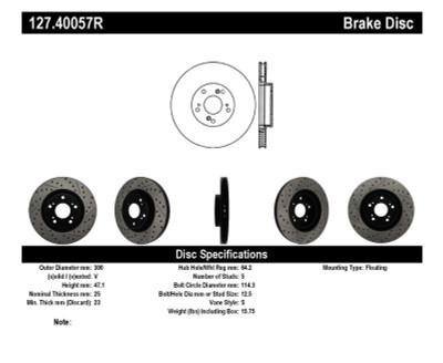 Centric 07 Accura CSX / 02-06 RSX / 06-09 Honda Civic Front Rotor - 121.40057