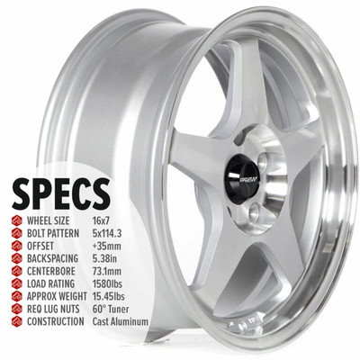 Enhance your vehicle's look with the ultra-lightweight (15.6 lbs) Circuit Performance CP22 16x7 Machined Silver wheel. This classic Spoon SW388 replica features a 2" machined stepped lip and a precise 4x100 [+35mm] fitment.