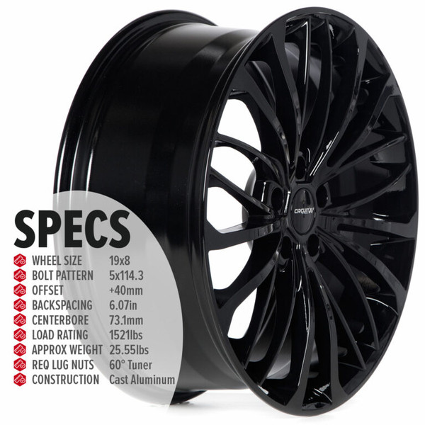 Circuit Performance CP36 19x8 Full Gloss Black 5x114.3 [+40mm] Wheel