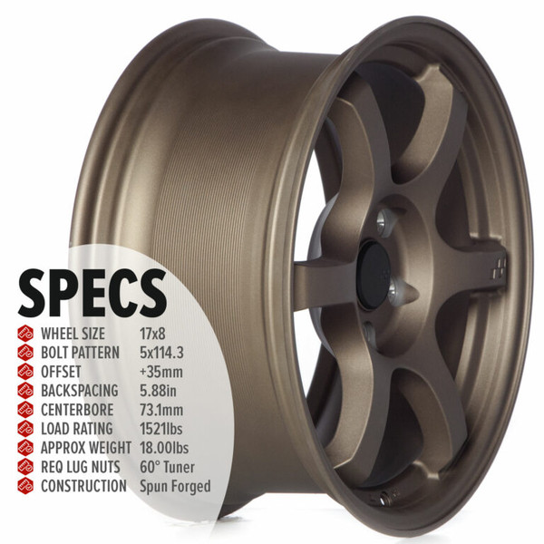 • ELEVATE YOUR VEHICLE’S LOOK: The modern concave six-spoke design combines strength with style. Drive with confidence and elegance thanks to the premium look of the matte bronze finish.