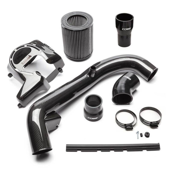 The COBB Ford Focus ST/RS Redline Carbon Fiber Intake is a great way to dress up your engine bay while increasing engine performance at the same time. The carbon fiber tube and airbox lid are constructed of a 3k tow in a 2x2 twill weave pattern. Everything is held together with black 4-ply silicone couplers accompanied by black e-coated 304 stainless steel hardware. A gloss finish and bespoke Redline-specific badge keeps everything tidy under the hood. Included is a pre-oiled, dual cone, filter to increase airflow and amplify that great turbo sound. This intake is a complete factory replacement all the way to the turbo and is compatible with the original factory tune and all available COBB OTS maps.