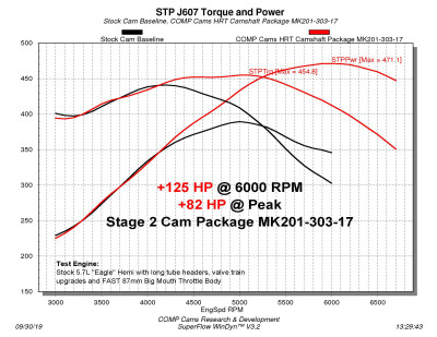 COMP Cams HRT Camshaft Packages for Dodge Gen III HEMI applications take the guesswork out of choosing the right valve train upgrade package for your specific engine and desired performance.The “Low Shock Technology” behind COMP Cams HRT camshafts features lobe profiles designed to maximize horsepower while improving stability at higher RPM. These profiles are also easier on the valve springs, enhancing durability and reducing load loss. By Spintron and dyno testing these new profiles with many combinations of valve train components, COMP Cams engineers have created valve train packages that are perfectly matched for maximum horsepower and reliability in popular modern HEMI applications. The resulting Stage 1, Stage 2 and Stage 3 HRT Camshaft Packages can add up to 170 horsepower (depending on the application) and are available as base Cam Kits (CK-Kit) or the more complete Master Kits (MK-Kit).CK-Kits include camshaft, phaser limiter (VVT Hemi only), pushrods, Beehive or Conical Valve Springs, chromemoly steel retainers, valve locks, spring seats and valve seals. MK-Kits include everything found in the CK-Kit with the addition of upgraded, drop-in performance lifters.