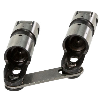 Sportsman Lifters from COMP Cams are designed to be a premium and lighter weight upgrade over Endure-X Lifters and a value alternative to the Elite Race option. Sportsman Lifters are offered in two configurations: a standard/traditional needle bearing axle/wheel design or an optional bronze bushing axle/wheel setup. And for Chevrolets, there are also left or right offset pushrod seat options. Each design features two pressurized EDM oil feeds to the axle, along with an edge orifice feed to the wheel. This design delivers a more reliable oil feed than most other options on the market. Sportsman Lifters also feature a shallower oil band than competitors versions for increased strength and rigidity, while internal machining helps to reduce weight. The body design utilizes a skirted wheel that strengthens the lifter ears and also provides more contact area with the lifter bore for further lifter stability. In addition, staked axles eliminate clips and provide robust axle retention. This permanent axle retention feature increases the stiffness of the lifter ears and helps prevent the ears from spreading. Sportsman Lifters are built from 8620 premium steel for increased strength and wear resistance and feature a captured link bar design. They utilize a tapered and slotted link bar tower for reduced weight and improved aesthetics. The lifters also feature a tall body to enable use in both standard and .300" tall lifter bores the result is increased strength and less lifter bore wear.