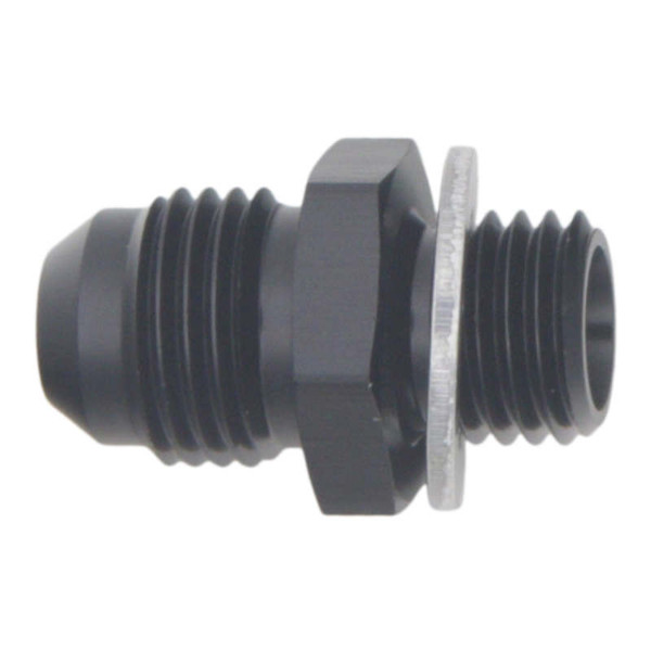 DeatschWerks 6AN Male Flare to M12 X 1.5 Male Metric Adapter (Incl Washer) - Anodized Matte Black - 6-02-0613-B