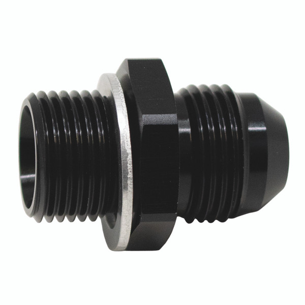 DeatschWerks 6AN Male Flare to M18 X 1.5 Male Metric Adapter (Incl Washer) - Anodized Matte Black - 6-02-0616-B