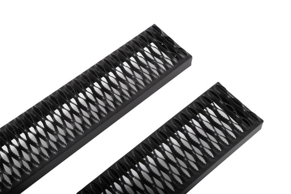 Dee Zee Rough Step - Industrial gauge aluminum coated in Dee Zees black NRT(TM) (No Rust Technology) powder coat to increase corrosion resistance. Industrial grating step provides extra traction getting in and out of the vehicle while allowing mud, water, snow, and ice to drain off the stepping area. Full length. Custom Fit - some drilling may be required. Brackets sold separately.