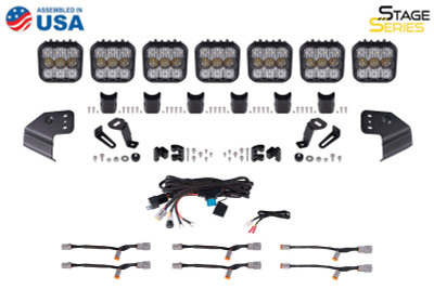 Included in the box: Two (2) Application-specific heavy-duty steel brackets. Six (6) Stage Series 5inch LED Pods. Five (5) CrossLinks with hardware. One (1) CrossLink endmount kit. Five (5) Crosslink splitter harness. One (1) heavy-duty single-output harness. Installation Guide.