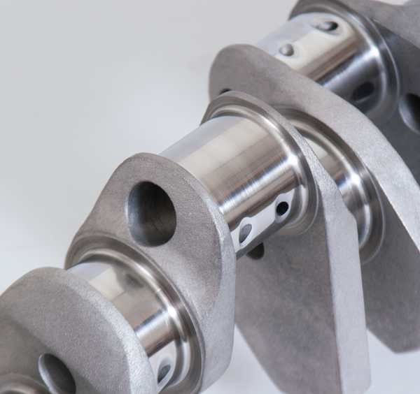 Eagle featherweight forged 4340 steel Cranks feature a non-twist forging, lightweight counterweight design to reduce rotating weight, .125" fillet radiuses for superior strength so chamfered / narrowed bearings required, nitrided surface and micropolished. Intended for restricted-class competition use. Lightweight rods and pistons required for ease in balancing.