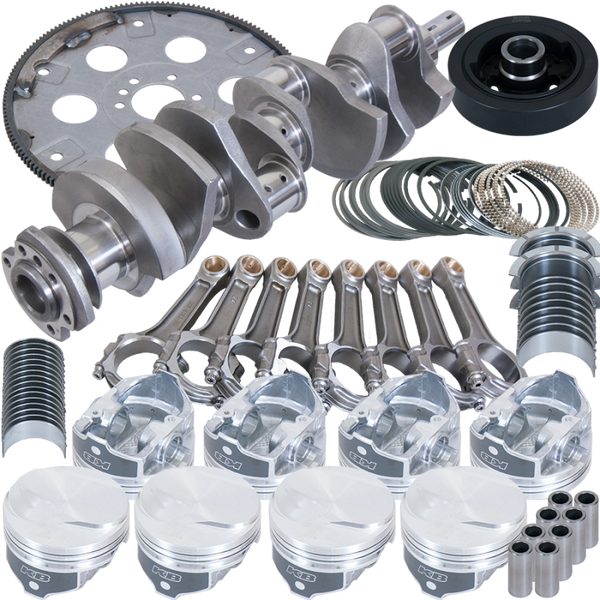 BALANCED 4.250" Cast Crank, 6.385" I-BEAM Rods,7/16" ARP 8740 BOLTS, HYPEREUTECTIC KB 17CC CLOSED CHAMBER DOME 4.280" PISTONS, PLASMA-MOLY FILE-FIT RINGS,KING SI Rod/MAIN BEARINGS.