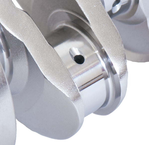 Eagle Billet 4340 steel crankshafts feature .125" fillet radiuses for superior strength so chamfered / narrowed bearings required, nitrided surface and micropolished.