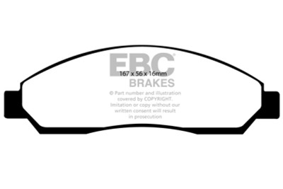 If you simply need a quality OEM replacement pad, look no further than Ultimax. Made in the UK Bristol EBC Brakes manufacturing plant Ultimax is a beautifully engineered brake compound that lasts well, produces minimal dust and is the perfect choice for the urban or daily driver. Why spend more if all you need is a quality replacement pad.The Ultimax pad does include a small percentage of steel fibre to achieve its price point, far less content than our competition where steel fibre content can attain 50 volume and this optimum fibre blend is what makes Ultimax both popular and unique amongst brake blends .Once bedded in Ultimax will inspire confidence in any car light truck or SUV no matter how you drive.Its universal heat range abilities and low rotor wear are additional benefits of the Ultimax pad range which is the EBC worldwide number one selling brake with numbers of sets sold running into tens of millions over the recent years. Unlike many of our performance grades Ultimax has remain unchanged as a pad compound for ten years now, a true testament to its success and customer acceptance. Why change a winning formula.Black coded in the EBC range EBC Ultimax is a fully ECE R 90 approved brake pad range and at its lower price point, less than HALF the price of original parts yet TOTALLY EQUIVALENT by nature of its R 90 brake safety approval, Ultimax offers great value for money and first class driving safety.When replacing brakes of any kind please remember how important brake safety is to your own well being and either have a professional mechanic install your new brakes or if you are a qualified mechanic use the EBC installation DVD as a guide in support of your vehicle owner’s manual. These installation guide DVD tasters can be viewed here and the full DVD purchased from online vendors.