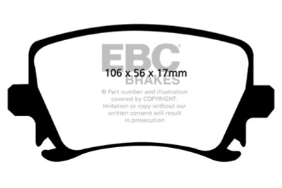Designed for premium street driving offering better brake effect up to 600-degrees C (1100-degrees F). EBC Greenstuff has a high initial brake effect and gives drivers confidence from first application of the brake pedal. There is no such thing as a NO DUST pad. The very nature of how a brake works requires that some dust be generated to avoid rotor vibration (shimmying). The EBC pad creates less dust and dust is more easily washed off than most. All pads create more dust as they are bedding in especially if rotors are worn. Nominal friction coefficient 0.55. For heavier faster cars and vehicles above 200bhp we strongly recommend Redstuff which DOES offer much less dust.