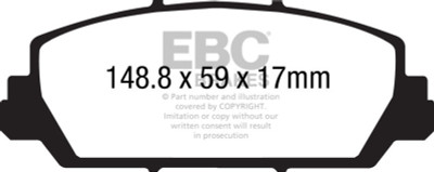 There are TWO reasons our customers love Redstuff, First because they are the lowest dust pad we have encountered by reducing dust by 60-90-percent. Plus the minimal dust you see is very easily removed with a simple sponge wash as it contains no steel fibre particles as in ALL OTHER pads. Second they brake like an alligator right from cold (as good as Original pads or better) and just get better as they heat up.This material is a Synthetic Fiber based brake compound enhanced with ceramic particles. If you have previously tried EBC redstuff (pre-ceramic compound) this material is light years ahead. It lasts longer; it brakes better and is quieter. Being a hard wearing pad, bed-in times can be as long as 1000 miles and drivers must be patient until the pad takes up the shape of their disc (brake rotor). This is a truly impressive fast road pad for repeated heavy braking.It emits far less dust than semi-metallic pads and has been proven to stop a passenger car/sedan/sport compact/hot hatch 13 metres quicker than OEM pads from 100mph/160kph. Features EBC Brake-In surface coating which conditions rotor surface and accelerates pad bed-in. Nominal friction coefficient 0.5 with approx. 50-percent dust reduction.Most EBC Red Ceramic pads are approved to ECE R90 brake safety regulation.