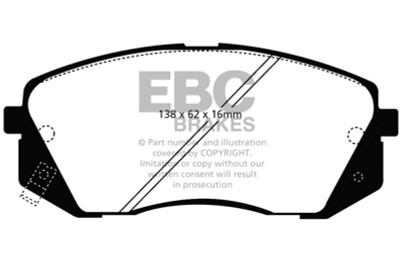 Designed for premium street driving offering better brake effect up to 600-degrees C (1100-degrees F). EBC Greenstuff has a high initial brake effect and gives drivers confidence from first application of the brake pedal. There is no such thing as a NO DUST pad. The very nature of how a brake works requires that some dust be generated to avoid rotor vibration (shimmying). The EBC pad creates less dust and dust is more easily washed off than most. All pads create more dust as they are bedding in especially if rotors are worn. Nominal friction coefficient 0.55. For heavier faster cars and vehicles above 200bhp we strongly recommend Redstuff which DOES offer much less dust.