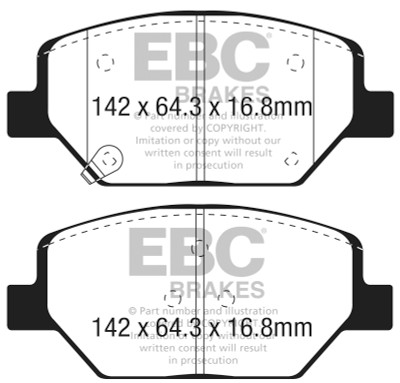 Designed for premium street driving offering better brake effect up to 600-degrees C (1100-degrees F). EBC Greenstuff has a high initial brake effect and gives drivers confidence from first application of the brake pedal. There is no such thing as a NO DUST pad. The very nature of how a brake works requires that some dust be generated to avoid rotor vibration (shimmying). The EBC pad creates less dust and dust is more easily washed off than most. All pads create more dust as they are bedding in especially if rotors are worn. Nominal friction coefficient 0.55. For heavier faster cars and vehicles above 200bhp we strongly recommend Redstuff which DOES offer much less dust.