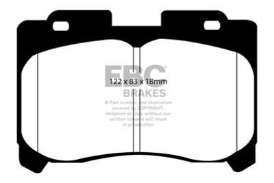 There are TWO reasons our customers love Redstuff, First because they are the lowest dust pad we have encountered by reducing dust by 60-90-percent. Plus the minimal dust you see is very easily removed with a simple sponge wash as it contains no steel fibre particles as in ALL OTHER pads. Second they brake like an alligator right from cold (as good as Original pads or better) and just get better as they heat up.This material is a Synthetic Fiber based brake compound enhanced with ceramic particles. If you have previously tried EBC redstuff (pre-ceramic compound) this material is light years ahead. It lasts longer; it brakes better and is quieter. Being a hard wearing pad, bed-in times can be as long as 1000 miles and drivers must be patient until the pad takes up the shape of their disc (brake rotor). This is a truly impressive fast road pad for repeated heavy braking.It emits far less dust than semi-metallic pads and has been proven to stop a passenger car/sedan/sport compact/hot hatch 13 metres quicker than OEM pads from 100mph/160kph. Features EBC Brake-In surface coating which conditions rotor surface and accelerates pad bed-in. Nominal friction coefficient 0.5 with approx. 50-percent dust reduction.Most EBC Red Ceramic pads are approved to ECE R90 brake safety regulation.