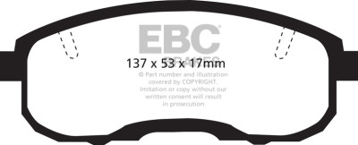 There are TWO reasons our customers love Redstuff, First because they are the lowest dust pad we have encountered by reducing dust by 60-90-percent. Plus the minimal dust you see is very easily removed with a simple sponge wash as it contains no steel fibre particles as in ALL OTHER pads. Second they brake like an alligator right from cold (as good as Original pads or better) and just get better as they heat up.This material is a Synthetic Fiber based brake compound enhanced with ceramic particles. If you have previously tried EBC redstuff (pre-ceramic compound) this material is light years ahead. It lasts longer; it brakes better and is quieter. Being a hard wearing pad, bed-in times can be as long as 1000 miles and drivers must be patient until the pad takes up the shape of their disc (brake rotor). This is a truly impressive fast road pad for repeated heavy braking.It emits far less dust than semi-metallic pads and has been proven to stop a passenger car/sedan/sport compact/hot hatch 13 metres quicker than OEM pads from 100mph/160kph. Features EBC Brake-In surface coating which conditions rotor surface and accelerates pad bed-in. Nominal friction coefficient 0.5 with approx. 50-percent dust reduction.Most EBC Red Ceramic pads are approved to ECE R90 brake safety regulation.