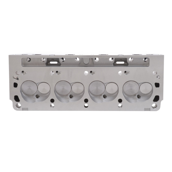 Cylinder Head Specifications: Combustion chamber volume: 60cc; Intake runner volume: 205cc; Exhaust runner volume: 62cc; Intake valve diameter: 2.08"; Exhaust valve diameter: 1.60"; Valve stem diameter: 11/32"; Valve guides: Manganese Bronze; Deck thickness: 5/8"; Valve spring diameter: 1.46"; Valve spring maximum lift: .575"(5028) / .650"(5027); Rocker stud: 3/8"; Guideplate: Hardened steel; Pushrod diameter: 5/16"; Valve angle: 20°; Exhaust port location: Stock; Spark plug fitment: 14mm x 3/4 reach, gasket seat * INSTALLATION NOTE: Hardened pushrods required, use Edelbrock #9632 (flat tappet only) for 302 applications. Will not accept rail rockers. 289-302 V8s require Head Bolt Bushings #9680 and either Head Bolt Kit #8552 (7/16") or stock head bolts. Match with Edelbrock head gasket sets. Bare heads will have valve guides and seats installed, but will require final sizing & a valve job to match the valves you will be using. Recommended spark plugs are Champion RC12YC or equivalent 14mm x 3/4" reach with flat gasket seat.