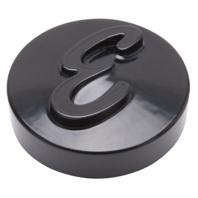 Edelbrock part #4270 E Logo Air cleaner round nut has an anodized black finish with a raised "E" script logo.