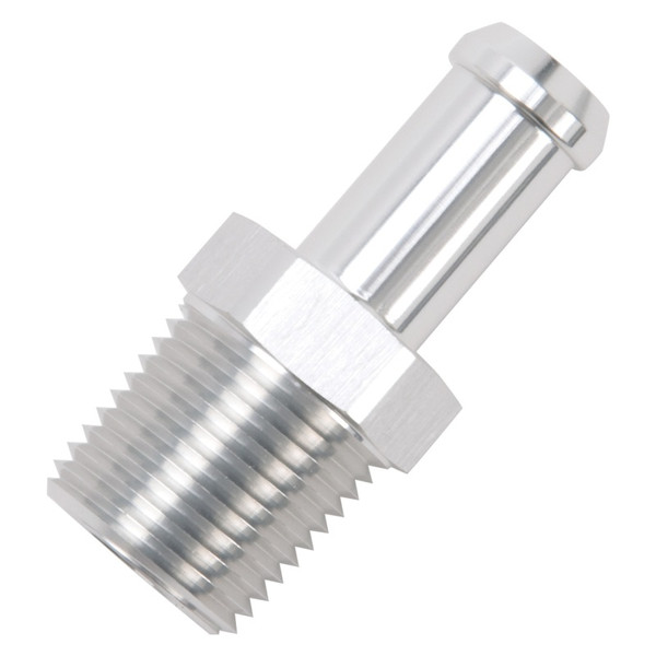 Edelbrock Hose End Straight 1/2In NPT to 1/2In Barb Clear Anodize - 8121