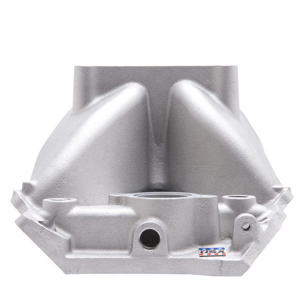 SUPER VICTOR II (3500-8500 RPM) For Standard-Deck (9.8") & Tall-Deck (10.2") B/B Chevy Rectangular Port. These single-plane intake manifolds are designed for use with large cubic inch big-block Chevy engines using the latest design conventional port heads. They are ideal for any 1,000+ horsepower drag race engine with high air flow requirements. All manifolds have an extra large carburetor outer flange with a 5" x 5" opening to fit high flow carburetors and throttle stops. Modern casting techniques create smooth, thin, extended divider walls for "out of the box" performance, just port match and go!