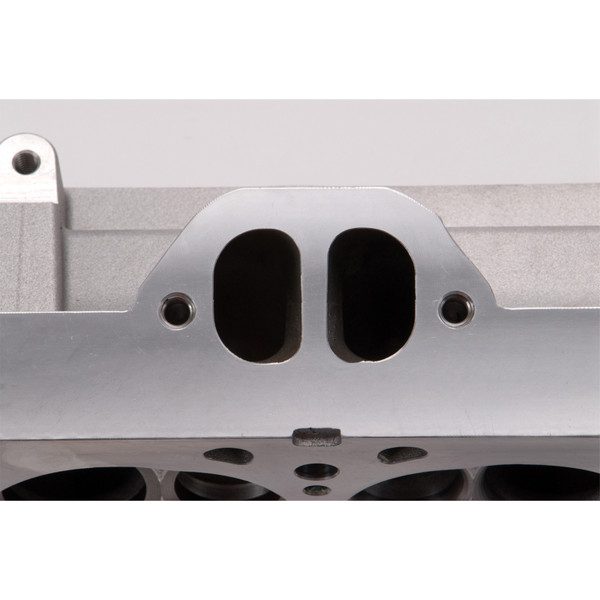 Cylinder Head Specifications: Combustion chamber volume: (A) 65cc / 72cc / 87cc; Intake runner volume: 204cc; Exhaust runner volume: 145cc; Intake valve diameter: 2.11"; Valve stem diameter: 11/32"; Exhaust valve diameter: 1.66"; Valve guides: Manganese bronze; Deck thickness: 5/8"; Valve spring diameter: 1.46"; 120lbs. @ 1.800" Inst. Height; Valve spring maximum lift: .550"; 1.150" Coil Bind; Rocker stud: 7/16"; Guideplate: Hardended steel; Pushrod diameter: 5/16"; Valve angle: 14°; Exhaust port location: Stock; Spark plug fitment: 14mm x 3/4 reach, gasket seat.. Performer Pontiac heads utilize a D-Port exhaust port configuration for use with standard D-port exhaust systems. They are designed for 1962-79 389, 400, 421, 455 cid V8 Pontiac engines with a 4.060in. or larger bore. They feature optimized oil return passages for increased oil flow. These heads are available in three heart shaped combustion chamber sizes, including 65cc, 72cc and 87cc. The 65cc combustion chambers are as-cast while the 72cc and 87cc chambers are fully CNCd to provide a 9.5:1 compression ratios when used with flat-top pistons. The spark plug has been relocated closer to the exhaust valve for improved performance. These heads are cast with extra thick port walls and a compact port size, making them ideal for CNC and hand parting. Complete heads include guide plats, rocker studs and high quality valvetrain for direct bolt-on application. Head crossover machined for 50-state emissions legal performance. INSTALLATION NOTE: 350 c.i.d. engines may require notching the block for valve clearance. Three head bolt bosses are raised higher than the standard D-port heights and will require head bolt kit #8561 to install these heads. Deck thickness: 5/8", rocker stud diameter: 7/16", pushrod diameter: 5/16" (width of slot in guide plate).