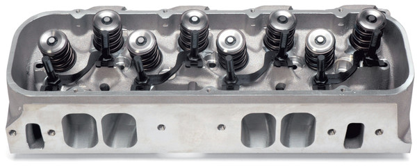 Edelbrock and Pat Musi Performance have combined efforts to produce the finest standard intake port location big-block Chevy head available. These cylinder heads feature an extra thick deck and extra material in the spring pockets for a heavy-duty casting that can be used with high-lift cam and heavy spring combinations. Edelbrock equips the complete cylinder heads with Manley dual-spring valve springs and titanium retainers good for up to .880 lift. The port designs are large oval (367 lh / 377 rh) that produce impressive flow - out-of-the-box. The exhaust port exits are raised .750 to greatly improve exhaust flow and power. Off the shelf large oval-port intakes are available through Edelbrock. INSTALLATION NOTE: Bare heads will have valve guides & seats installed, but will require final sizing & a valve job to match the valves you will be using. Deck thickness: 9/16", rocker stud diameter: 7/16", pushrod diameter: 3/8" (width of slot in guide plate).